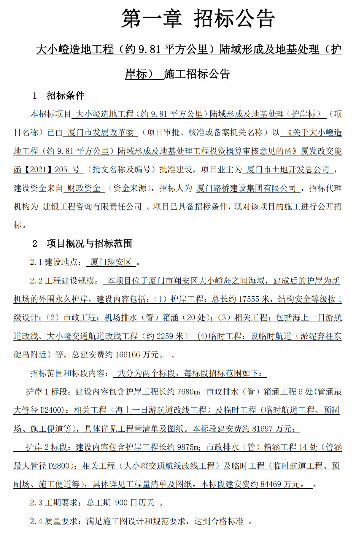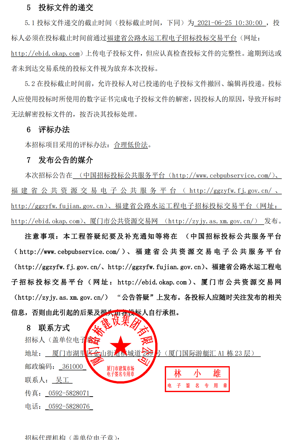 招標人: 廈門路橋建設集團有限公司