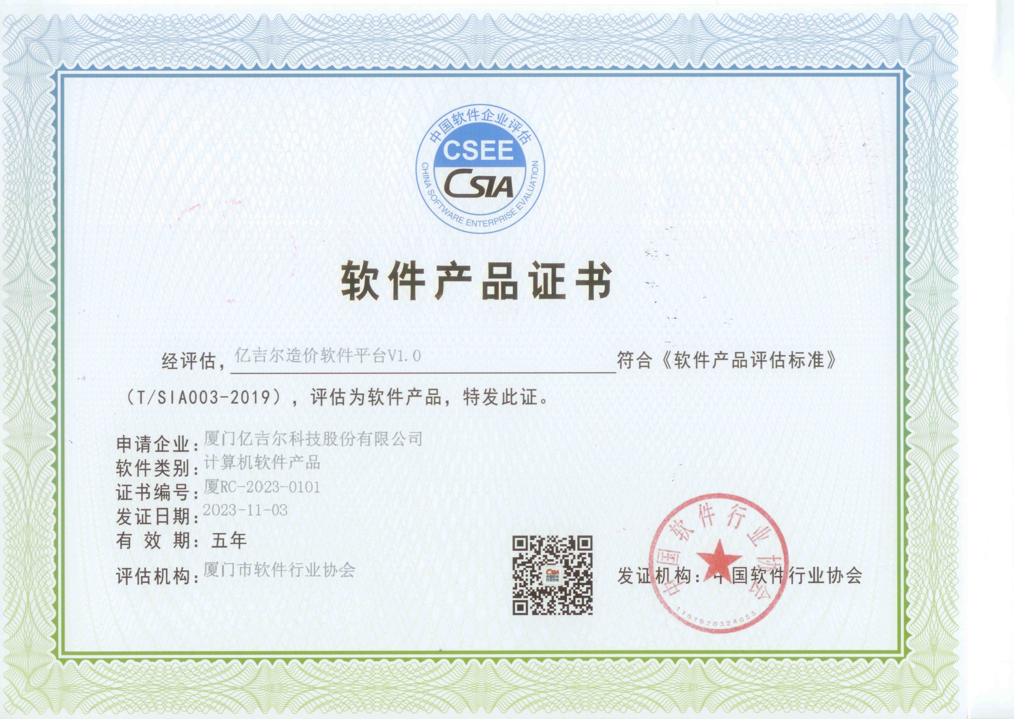 億吉爾造價(jià)軟件平臺(tái)產(chǎn)品證書(shū)