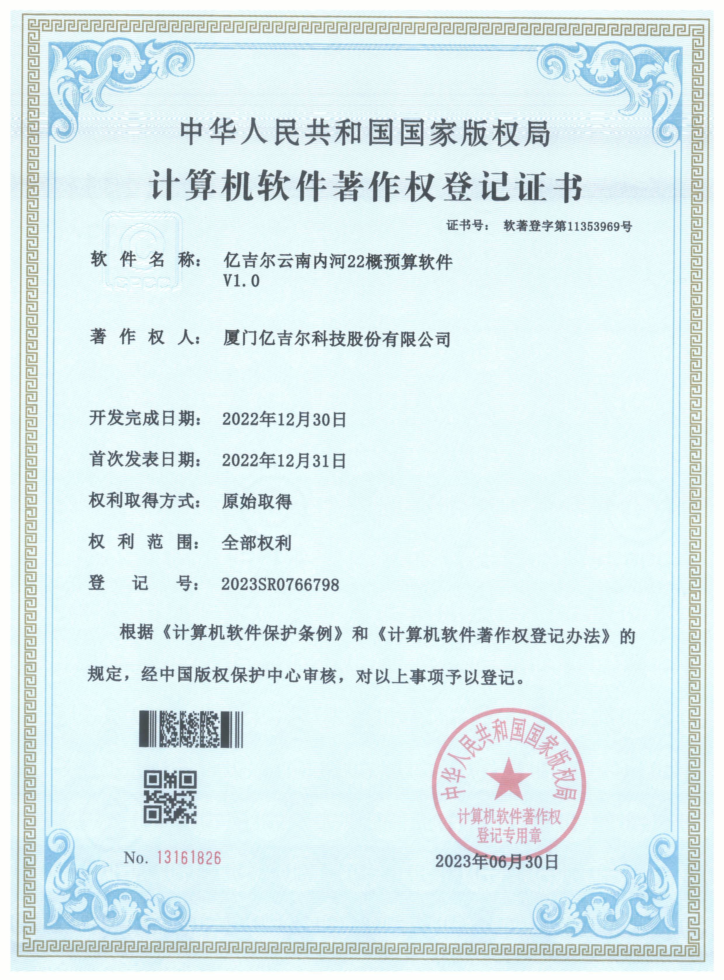 億吉爾云南內(nèi)河22概預(yù)算軟件登記證書 發(fā)布日期:2023年11月22日 瀏覽次數(shù):2065 關(guān)鍵字: 公司 1/1億吉爾云南內(nèi)河22概預(yù)算軟件登記證書(2023R11L0546651)